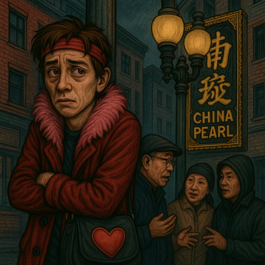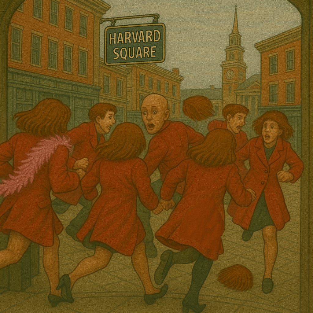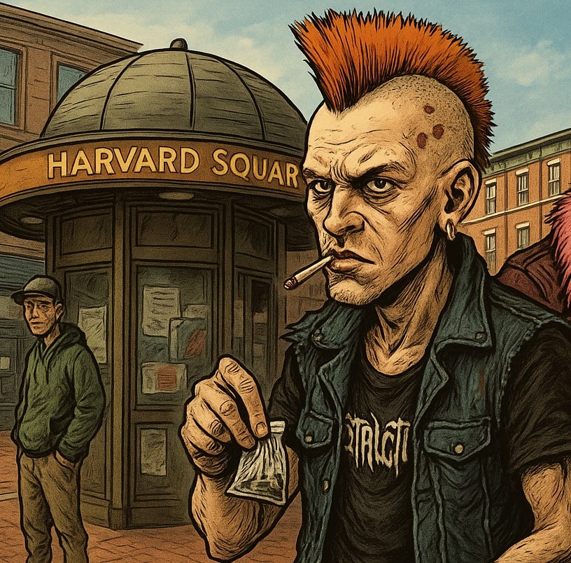 Cash job offer to act as decoys for a getaway in Harvard Square. Characters involved were drug addicts Tony Krause, Lolasister, Susan T. Cheese, Bridget Tenderhole, Equus Reese, and the late Stokely ('Dark Star') McNair.