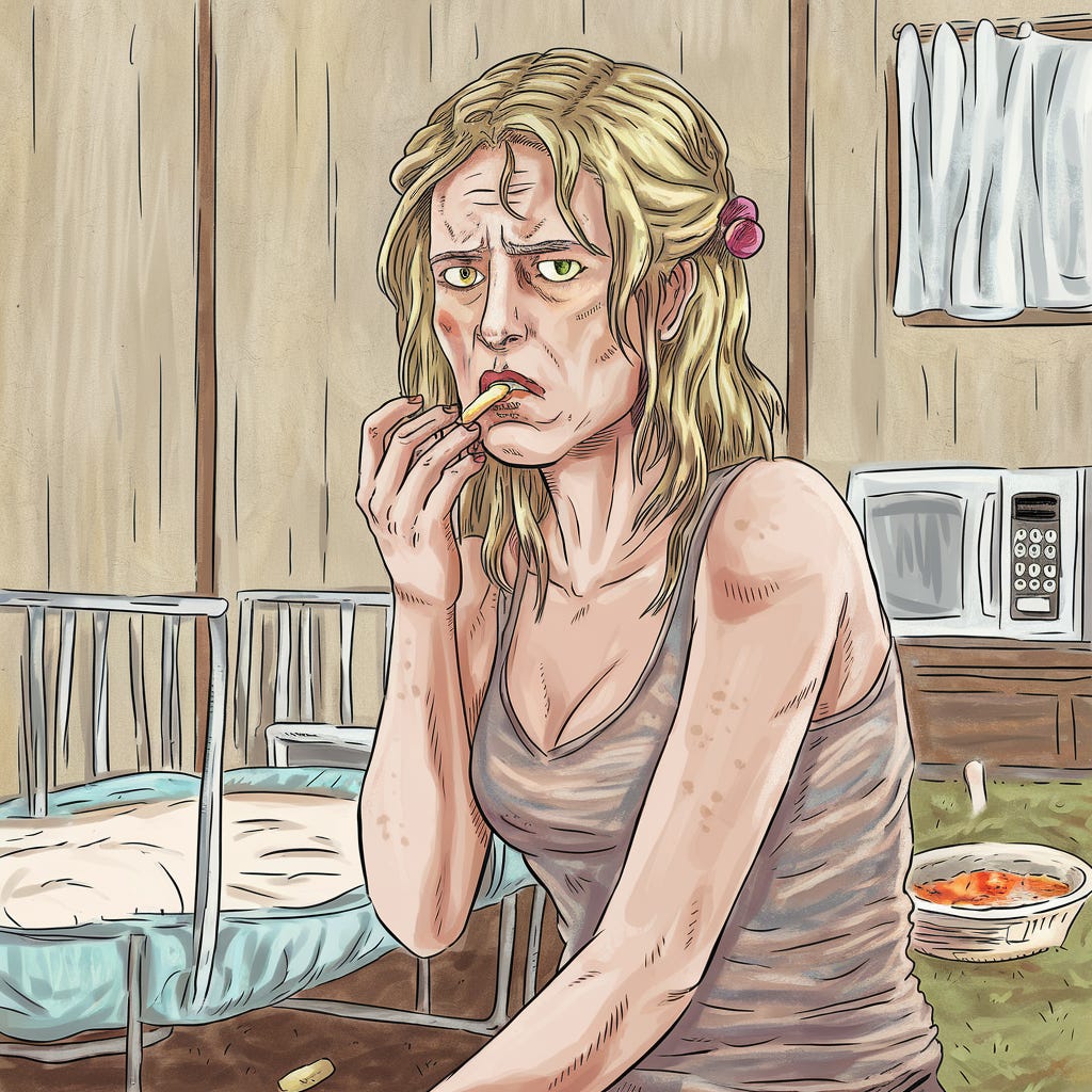 Deals drugs. Bad cocaine but good weed. Lives in a trailer. Fancied Mildred Bonk.