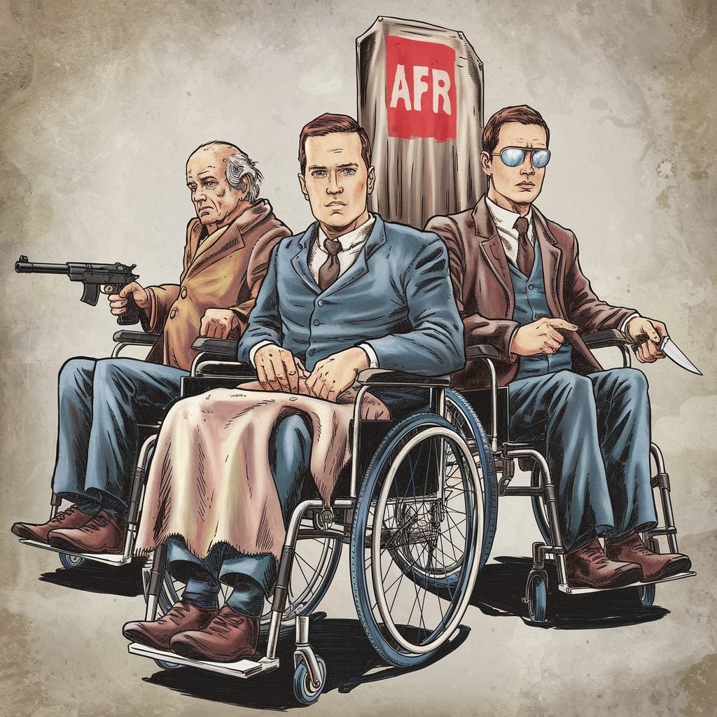 (Assassin Fouteils Rollent aka Wheelchair Assassins.) Quebec Separatist Group. Extremely violent. Group initiation is via a chicken-like game of jumping across railway tracks before oncoming trains. Less prominent members: Tassigny, Beausoleil, Balbalis, Ossowiecke, Desjardins, and Joubet.